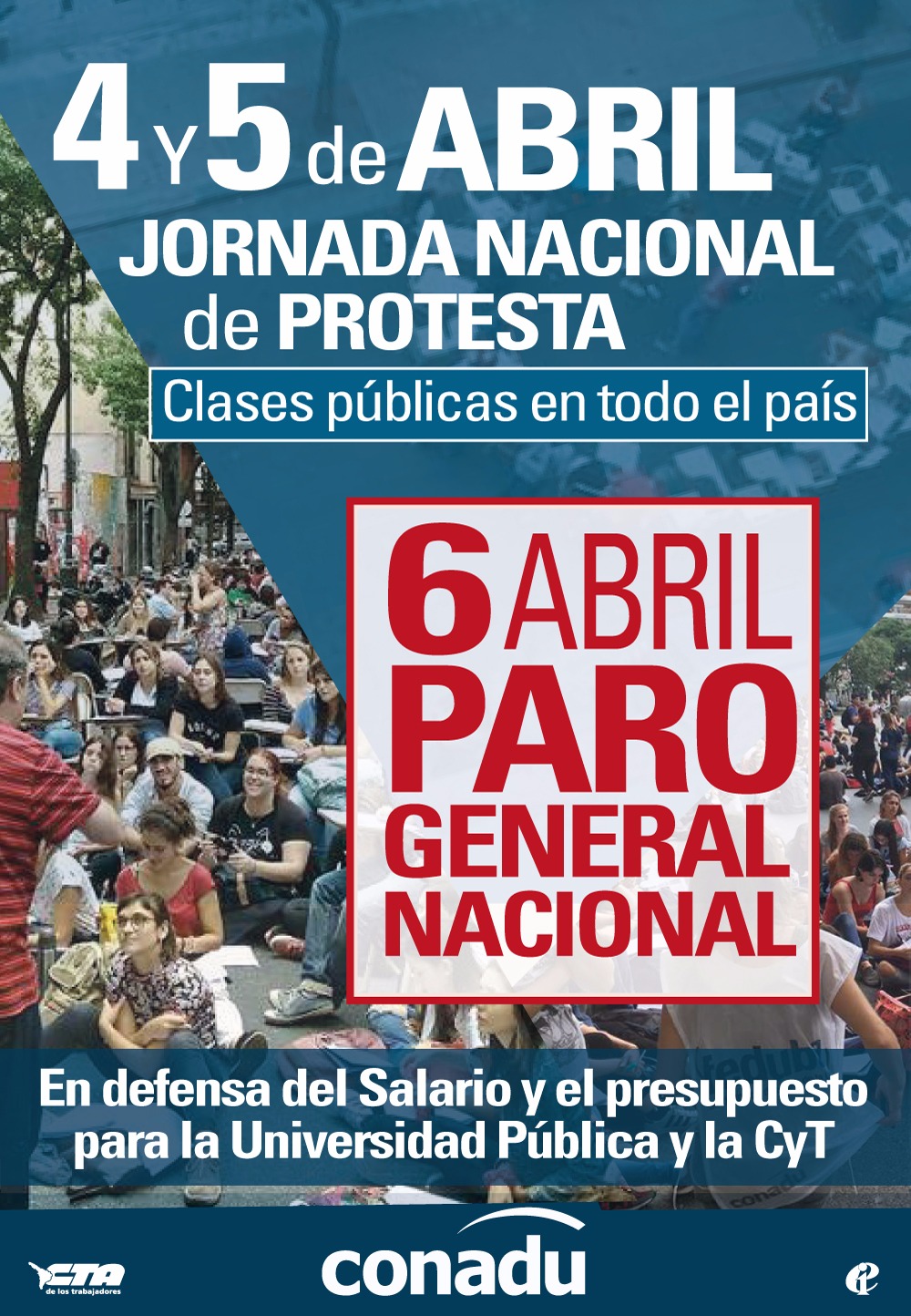 4 y 5. Jornada Nacional de Protesta con clases públicas en todas las Universidades junto a los estudiantes y la comunidad.