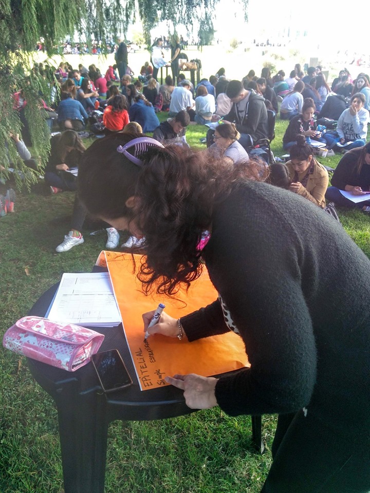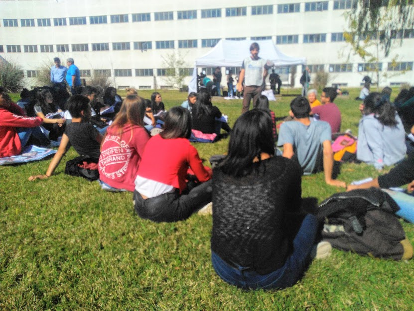 El predio se llenó de docentes y estudiantes que buscaron la forma de dar clases en estas condiciones particulares. Se usaron afiches, celulares, mesas. Pese a todo, algunxs estudiantes comentaron que estaban más cómodos que en las aulas en las que no entran. 4 años sin poder invertir en infraestructura ni designar docentes nos deja con aulas desbordadas, docentes sobrepasadxs, falta de baños y sillas. Nuestro proyecto de educación con inclusión y calidad se ve puesto en jaque por el ajuste del Ministerio de Educación, Cultura, Ciencia y Tecnología.