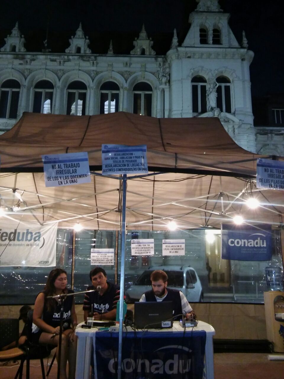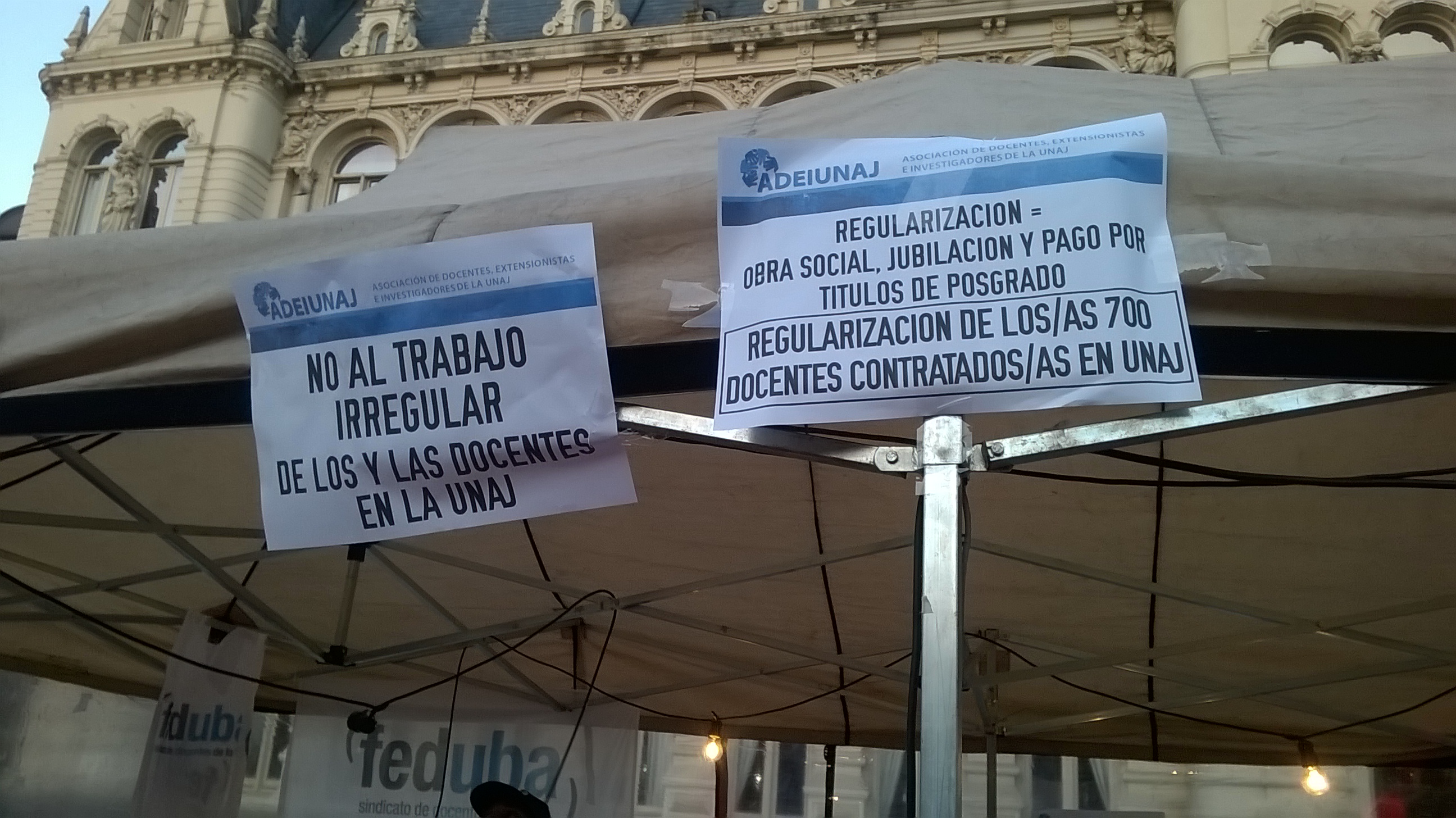El reclamo por las condiciones laborales de las/os trabajadoras/es docentes viene siendo un constante reclamo que hace un año logramos instalar en la paritaria nacional docente universitaria. Ver anuncio