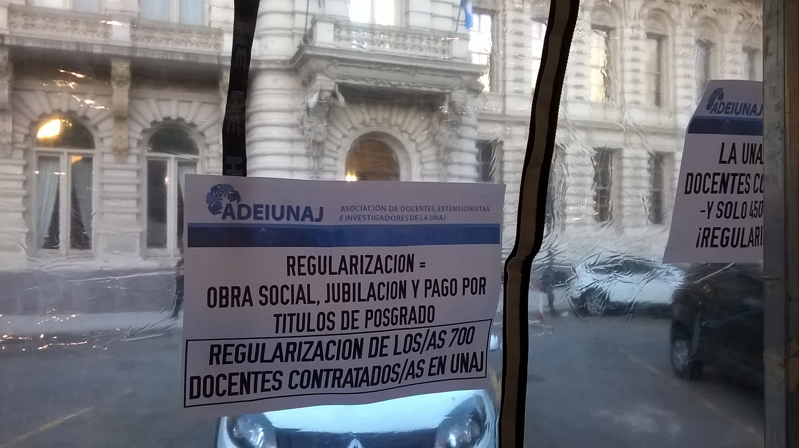Como resultado del trabajo de nuestra federación CONADU, la Secretaria de Políticas Universitarias le ha ofertado a la UNAJ una propuesta de regularización del 33% (en un proceso que implicaría 33% en 2017, 33% en 2018, 33% en 2019) de la planta docente de contratadxs para someterla a evaluación presupuestaria. En el marco de la confección de esa propuesta es que hemos sido convocados a dialogar para acordar los criterios de selección. En esa reunión hemos planteado la necesidad de ajustarnos a lo planteado por el Convenio Colectivo de Trabajo y a criterios de solidaridad. Entendemos que se debe priorizar la antigüedad y la dedicación en la comprensión de que cuanto más alta es la carga laboral es mayor la proporción de sus ingresos no registrados así como la precariedad de su situación en relación a aportes jubilatorios, obra social etc.